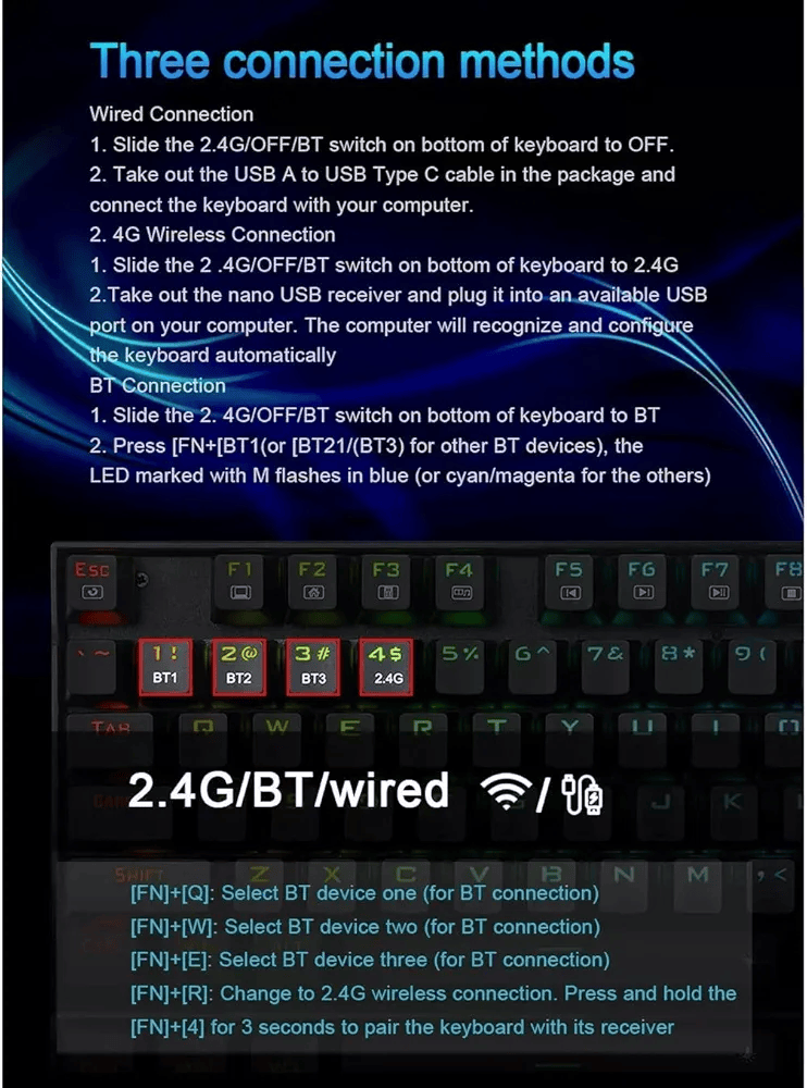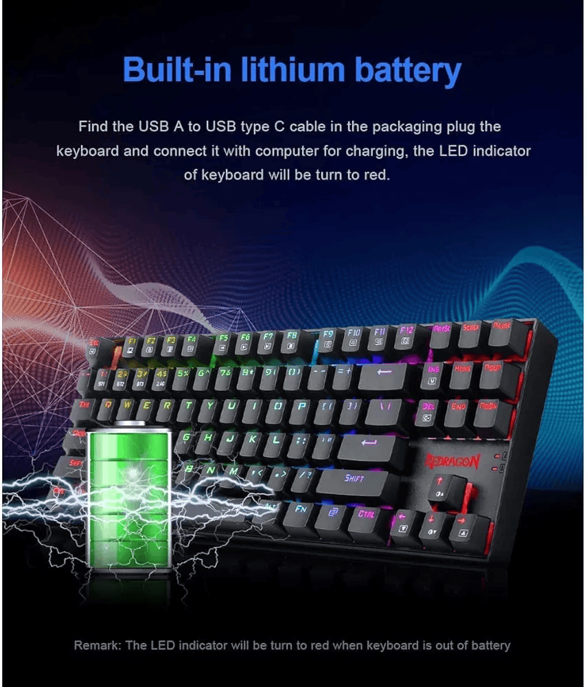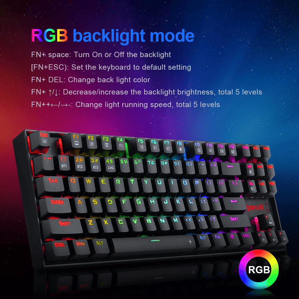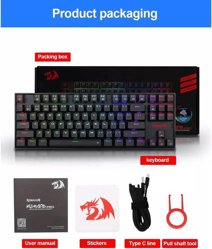 Redragon Kumara K552P-KBS Blue Switch RGB wireless Mechanical Gaming Keyboard